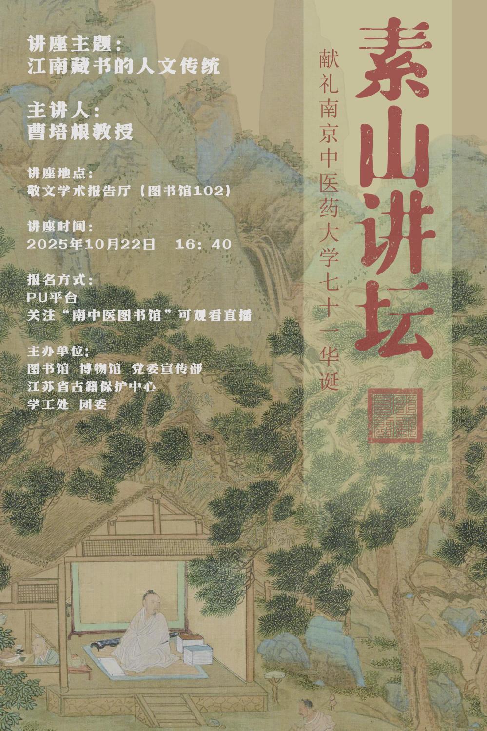 主讲专家:曹培根教授,苏州工学院教授、原校党委宣传部部长,现为江苏文脉工程江苏文库史料编副主编、苏州全书分卷主编。从事江南文化研究,主持国家社科基金项目《苏州传统藏书文化研究》《江南藏书文化研究》、江苏省社科基金项目多项。著《书乡漫录》《瞿氏铁琴铜剑楼研究》《常熟翁氏藏书研究》《江苏出版史清代卷》《钱谦益传》等,发表学术论文百余篇。主编《常熟文学史》、著《苏州传统藏书文化研究》分别获江苏省第十二届、十五届哲学社会科学优秀成果奖。