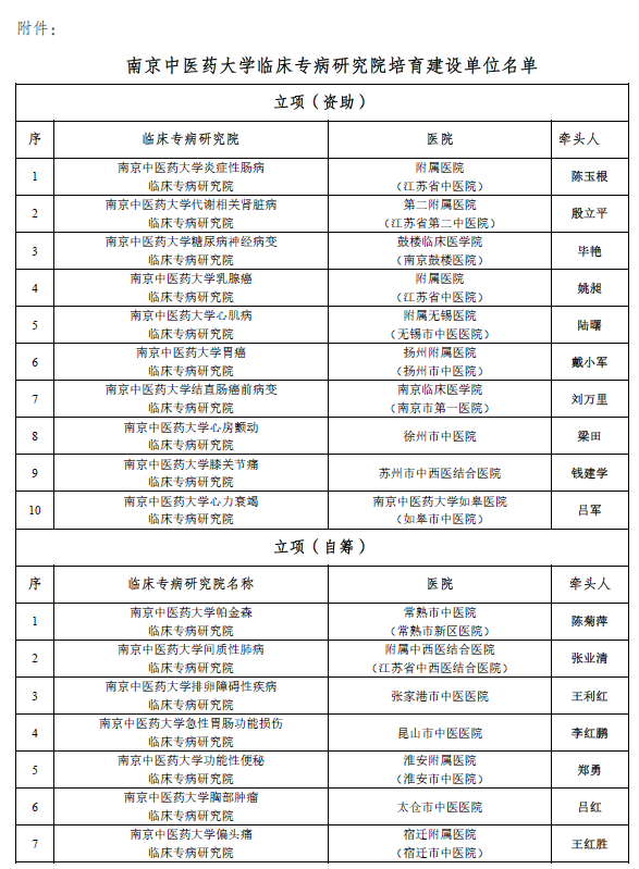 附件:南京中医药大学临床专病研究院培育建设单位名单