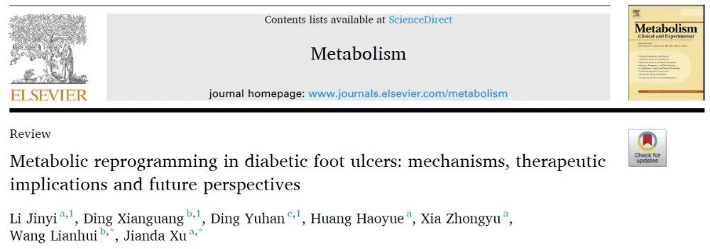 近日,我校常州附属医院(常州市中医医院)徐建达团队在《Metabolism: Clinical and Experimental》发表题为“Metabolic reprogramming in diabetic foot ulcers: mechanisms, therapeutic implications and future perspectives”的综述(IF=11.9),本文旨在介绍代谢重编程在DFU领域的现有认知、生物学特征及潜在机制,并提出其促进伤口愈合和预防DFU并发症的潜在治疗价值。此外,还着重探讨了当前面临的挑战及未来发展方向。