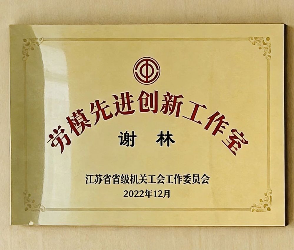 谢林劳模先进创新工作室于2022年由江苏省省级机关工会工作委员会和省卫生健康委正式认定。