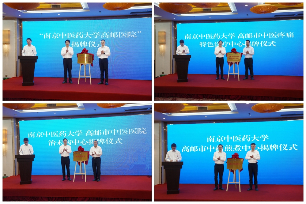 乔学斌与田醒民共同为“南京中医药大学高邮医院”揭牌。周恩超为“南京中医药大学-高邮市中医疼痛特色诊疗中心”“南京中医药大学-高邮市中医医院治未病中心”及“南京中医药大学-高邮市中药煎煮中心”揭牌。